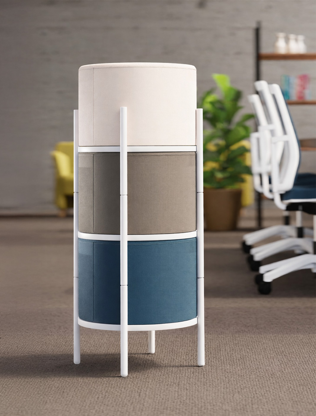 Tótem es el nuevo puff del Estudio Ofipartes. Fue desarrollado para ofrecer una solución que aporta el detalle final a los espacios. Es un complemento para llevar a cabo tareas cortas y esporádicas con comodidad. Su apilabilidad permite el uso eficiente de los espacios y sus ruedas facilitan su movimiento.